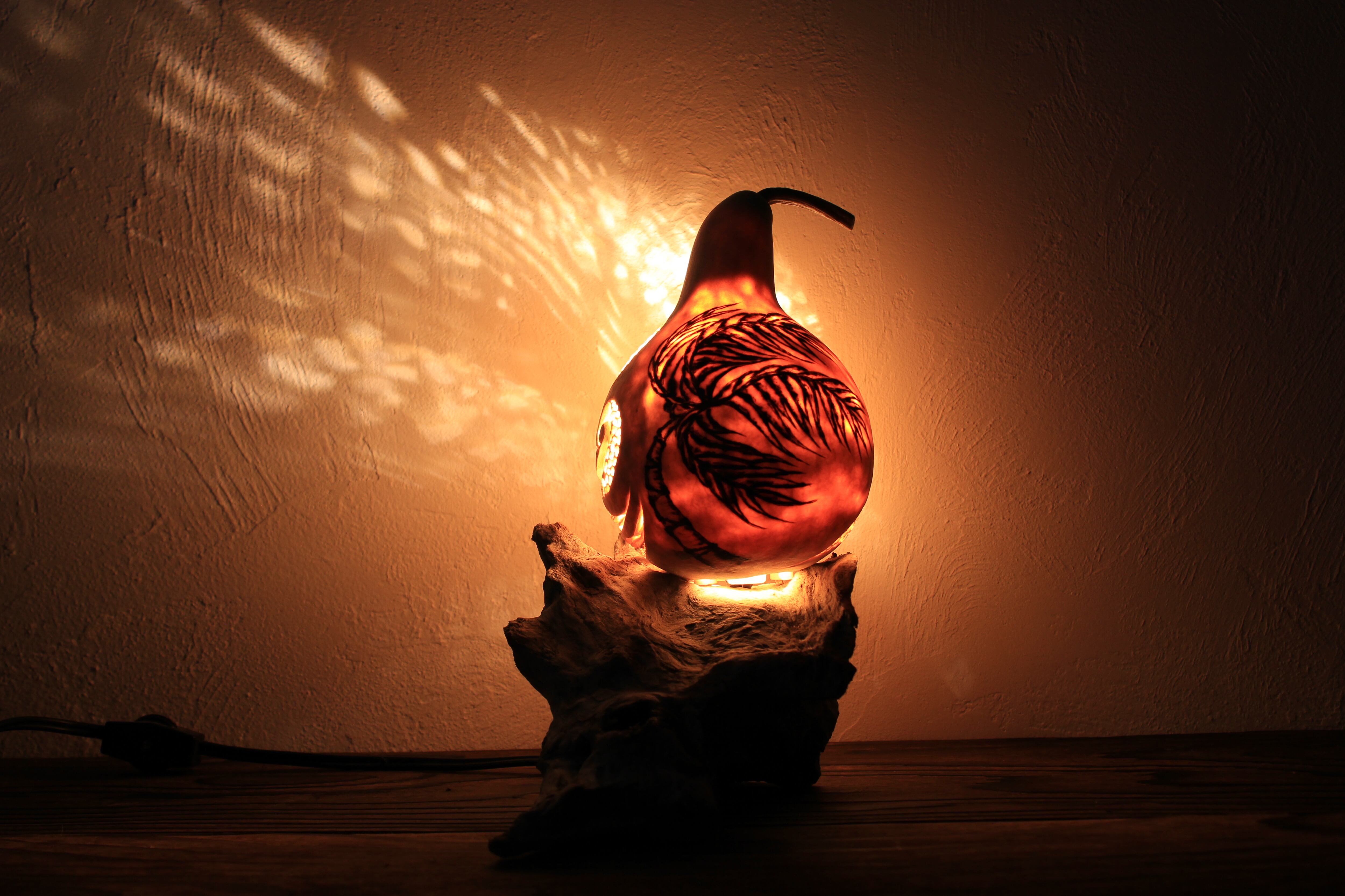 流木台座、中間スイッチ、0.7W LED電球付き。