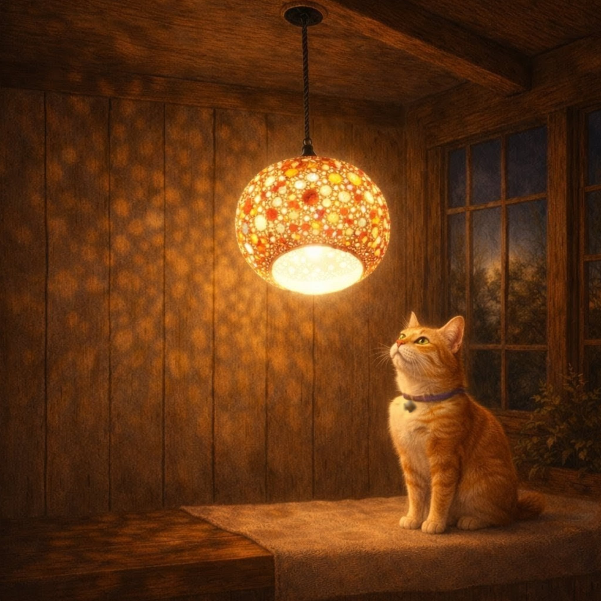 「あっ、こんばんは。とても素敵なランプですね。」